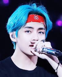 Taehyung With Blue Hair And Bandana